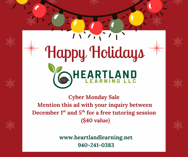 Heartland Learning provides in-person tutoring for students in the Denton and surrounding areas and online tutoring in: